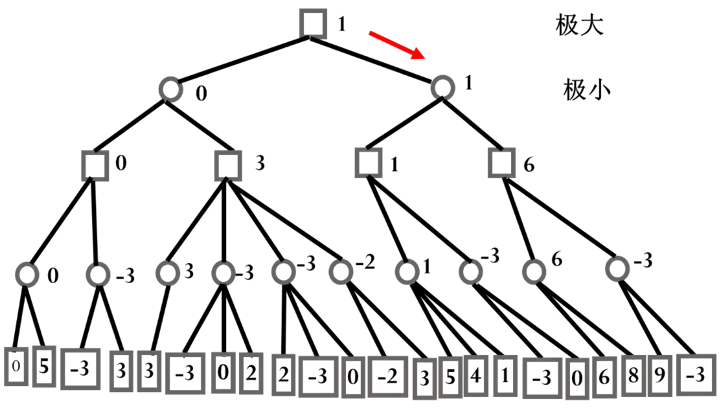 IBM的深蓝战胜国际象棋大师卡斯帕罗夫很大程度上要归功于α-β剪枝算法[2],那么什么是α-β剪枝算法呢?我们从极小-极大过程开始讲起。