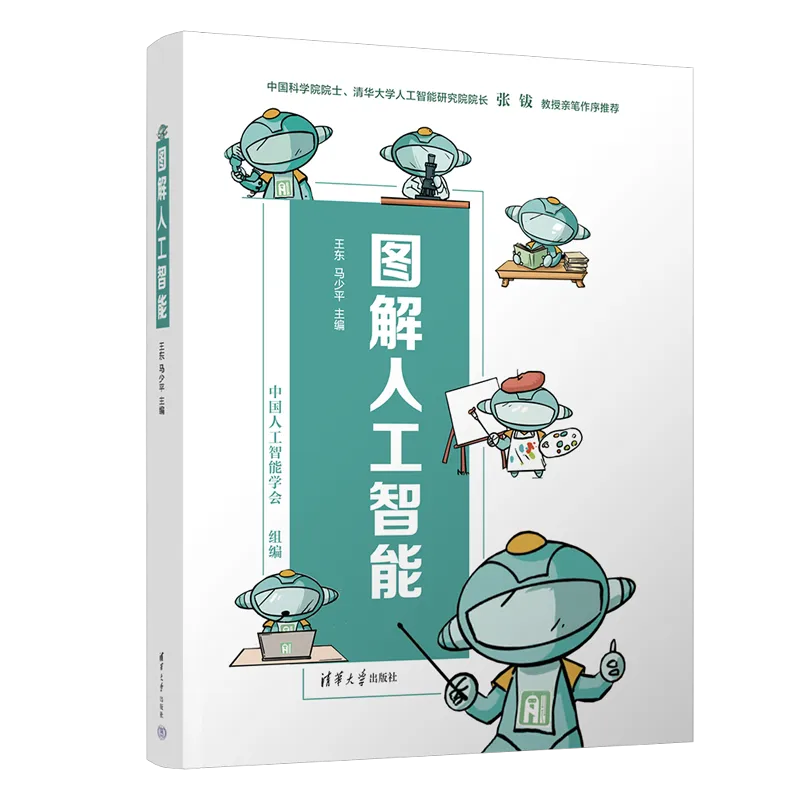 《图解人工智能》一书由清华大学王东、马少平两位老师主编,中国人工智能学会组编,清华大学出版社出版。本书已入选“新华荐书”第二十二期推荐图书,经新华网、半月谈等重量级媒体百万级转载;入选CCTV10《读书》栏目“2023年度品牌出版社好书大赏”;入选第四期“CCF科普阅读推荐图书”;入选“2023信息通信科普精品”。本书从基础概念、历史沿革、基础算法、代表性应用、最新研究进展、跨学科交叉成果等多个方面深入介绍人工智能。本书体系完整,科学性强,具有权威性。同时,该书以图解方式展示知识,通俗易懂,适用于人工智能通识教育。
