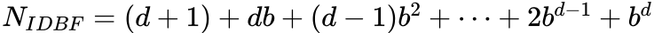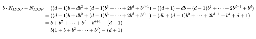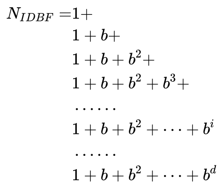 设迭代加深式宽度优先搜索算法产生的节点数为NIDBF,则有: