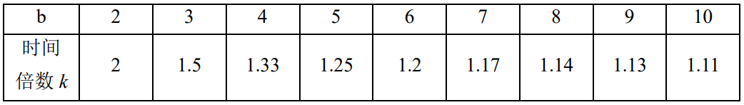 也就是说,在一个满的b叉树上做搜索的话,迭代加深式宽度优先搜索算法产生的节点数小于宽度优先搜索算法产生的节点数的 b/(b-1) 倍。分支数越大,二者所用时间越接近。表3.4给出了不同b值时所用时间比k,当b=2时k值最大为2。也就是说,迭代加深式宽度优先搜索算法所用时间不会超过宽度优先搜索算法所用时间的2倍。当然这是在满的b叉树上做搜索得到的结论,实际情况可能会有些不同,但大体上差不多是这个结论。