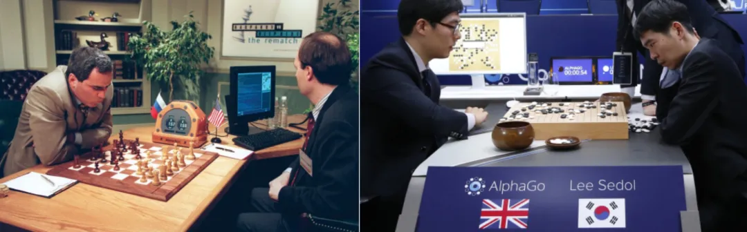 图4 深蓝对战卡斯帕罗夫 (左) 和 AlphaGo对战李世石 (右)