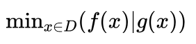 设x是决策变量,D是x的定义域,f(x)是指标函数,g(x)是约束条件。则优化问题可以表示为求解满足g(x)的f(x)最小值问题。即: