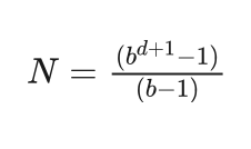 艾博士接着介绍说:对于一个深度为d的满b叉树,其节点总数N可以由下式给出: