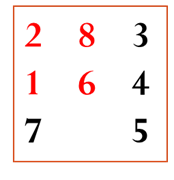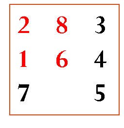 艾博士:八数码问题的限制条件是将牌每次只能移动一步,而且只能移动到空格位置。我们把这一限制条件放宽,每个将牌可以“跳跃”,从当前位置跳跃到目标位置,而且不管目标位置是否有其他将牌存在,都可以跳跃过去。这样当有m个将牌不在位时,采用这种跳跃的方式,最多经过m次跳跃,就达到了目标状态。因此这种宽条件下所移动的将牌次数不会多于原问题严格条件下的将牌移动次数,所以用不在位的将牌数定义h函数,可以满足A*条件,而且不在位将牌的多少,也一定程度上反应了该状态到达目标状态的距离。