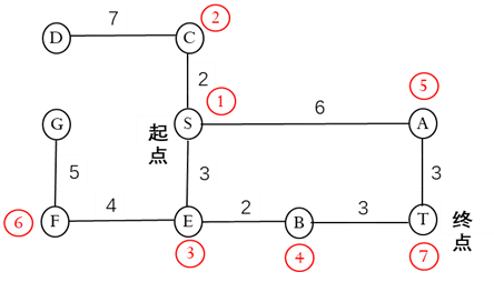 小明思考了一下,按照艾博士的要求在状态连接图上的标识出节点的扩展次序,如图3.11所示。