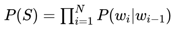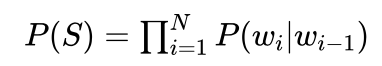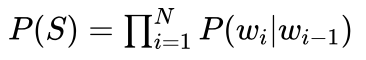 为了简化计算,我们下面将采用二元语言模型计算一个句子S的概率。