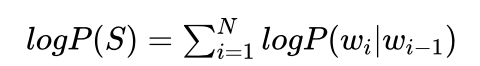 这样一方面可以将乘法变成加法,另一方面P(S)最大对应的句子S与log(P(S))最大对应的句子S是一致的,所以求log(P(S))最大对应的句子就可以了。