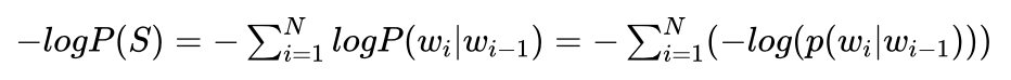 另外,求log(P(S))最大与求-log(P(S))最小是等价的,所以问题就又变成了求-log(P(S))最小对应的句子S。也就是求下式: