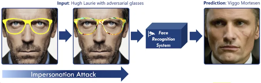 图3:戴上一个眼镜后,可以骗过人脸识别系统[2]