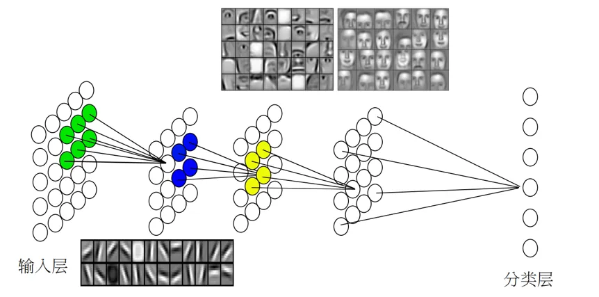 这种特征提取很辛苦,因为我们并不知道哪些特征更有效果,只能凭经验尝试。后来,人们发现利用深度神经网络可以将那些最有效的特征提取出来。如图3所示,经过一个神经网络,首先得到的是一些线条特征,然后是五官的局部特征,最后是整个脸的特征。研究人员发现,这种从局部到整体的特征学习方式和人的视觉系统很相似,这意味着机器可以通过类人的方式来“察颜观色”了。