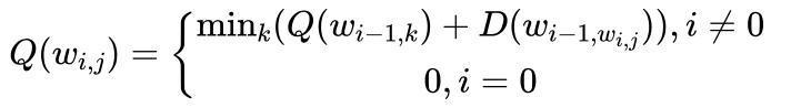 其中 Q(wi,j) 表示从初始节点 w0 到达节点 wij的最短路径的代价,D(wi-1,k , wi,j) 表示节点 wi-1,k到节点 wi,j 的代价。
