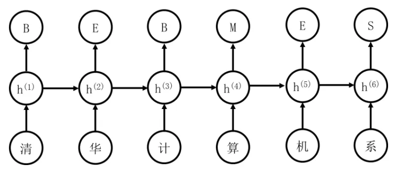 以“清华计算机系”为例,分词结果应该为“清华 计算机 系”。由于分词问题输入是以字为单位的,所以该循环神经网络的输入是一句话中所含字的字向量。字向量与词向量类似,也可以通过神经网络语言模型获得。输出是“B”、“E”、“M”和“S”这四个字母的概率,4个字母的含义为: