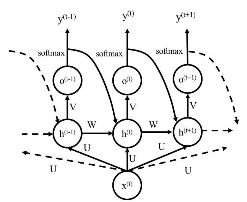 为了防止当输入序列很长时,序列中处于前面的元素被逐渐淡化的问题,可以采用双向循环神经网络,也就是同一个序列正向处理一次,逆向再处理一次,然后组合在一起使用。