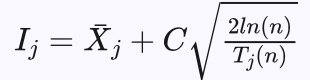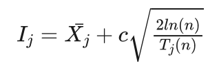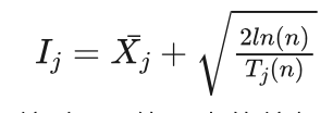 该算法的基本思想是,先每个拉杆拉动一次,记录每个拉杆的收益和被拉动次数,此时拉动次数都是1。按后按照下式计算拉杆j的信息上限值 :
