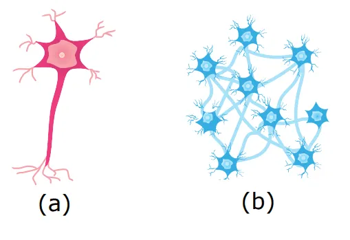 图1:人类神经元(a)和神经网络(b)示意图 [4]