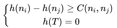 A*算法存在可能重复扩展节点的问题。当h函数定义不合理时,就可能会造成这种情况,从而降低算法的求解效率。如果h函数满足单调条件,则A*算法不会出现重复扩展节点的问题。h函数满足如下条件时,则称h函数是单调的: