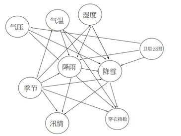 图3:一个复杂天气系统的贝叶斯网络[3]