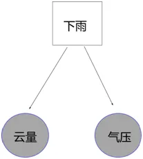 其中P(下雨)称为“下雨”这一事件的“先验概率”,意思是当没有观察到云量和气压这些“证据”时下雨的可能性。这一概率可以认为是一种经验知识,例如可以通过地理位置和季节等对是否可能会下雨有个先期预判。