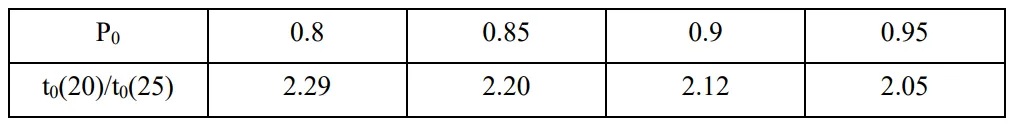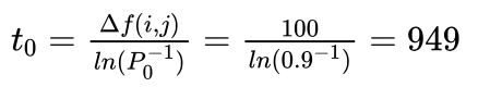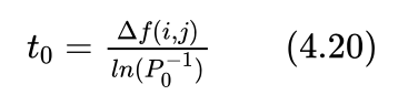 如果我们给定一个比较大的接受概率P0 ,比如 P0=0.9或者0.95,就可以从式(4.19)计算出 t0 值: