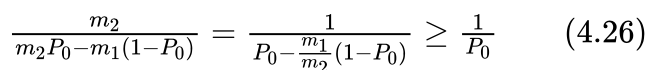 艾博士:小明分析的是对的。我们对比式(4.20)和式(4.25)也可以发现,在不考虑 m1 的情况下,这两个计算公式是一样的。我们对比式(4.20)和式(4.25)分母中的括号部分,式(4.25)有: