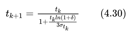 其中更新t0可以采用每次乘一个大于1的常数K的方法:
