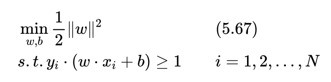 艾博士:我们先来回顾一下式(5.36)给出的线性可分支持向量机问题:
