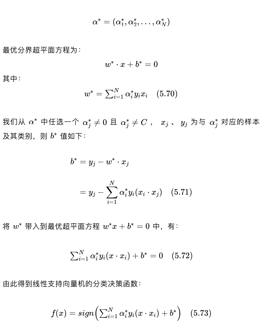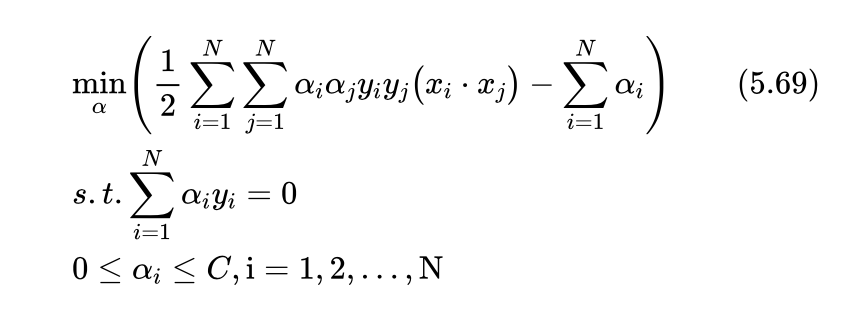 小明初看并没有发现有什么不同的地方,正想回答说没看出有哪些不同时,突然发现二者确实有少许差别,于是回答到:在式(5.57)中,αi 只要求大于等于0,而在这里要求是大于等于0,同时小于等于C。除此之外应该就没有其他方面的差别了。