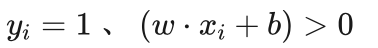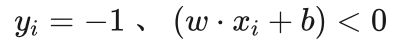 ,所以无论是正类还是负类样本点,均有函数间隔大于0的结果。但是当分类错误时,比如对于标记为正类的样本点被错分成了负类,则 yi还是为1,但是计算得到的