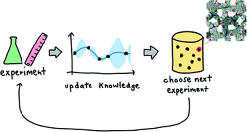 近年来,出现了一种在线学习的方法,该方法让人工智能系统指导我们一步步找到最优的材料结构,从而减少了离线建模方法对大量数据的需求[1]。如图4所示,这个过程首先是选择一个材料进行实验,得到它的吸附能力。然后,将这一实验结果作为数据,更新AI模型。基于更新后的模型,选择下一个需要验证的结构,得到它的吸附能力。这一结果再次作为新数据更新AI模型。通过重复上述过程,就可以在较低的实验成本下探索出具有最佳吸附能力的材料。