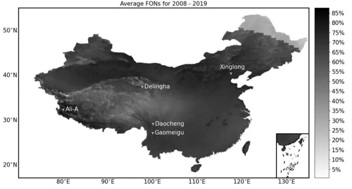 举个例子,中国科学院国家天文台联合印度尼西亚的科研团队发表了一项研究工作[1],利用人工智能、数据分析等技术,分析了风云2号气象卫星获取到的卫星云图,比较了中国境内不同地区的观测条件。结果显示,北纬40度附近地区的可观测天数最多,因此最适宜建设天文观测站。