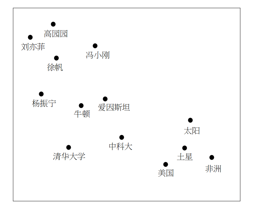 我们以词为例来说明。什么叫一个词的词义呢?传统方法会把一个词表示成一个固定的符号,然后对这个符号加以解释。比如“苹果”,首先是一种水果,然后是圆形,味酸甜,口感脆。有了这些描述,就可以把“苹果”和其他东西区分开。深度学习不理会这些具体化的描述,而是通过一个神经网络,将每个单词表示成一个向量,称为“词向量”。学习的目的是使得语义相似的词对应的词向量更加接近,而语义无关的词对应的词向量离的更远。这样就相当于把词的语义注入到了对应的词向量中,这一过程称为“语义嵌入”。一个词向量的例子如图1所示。