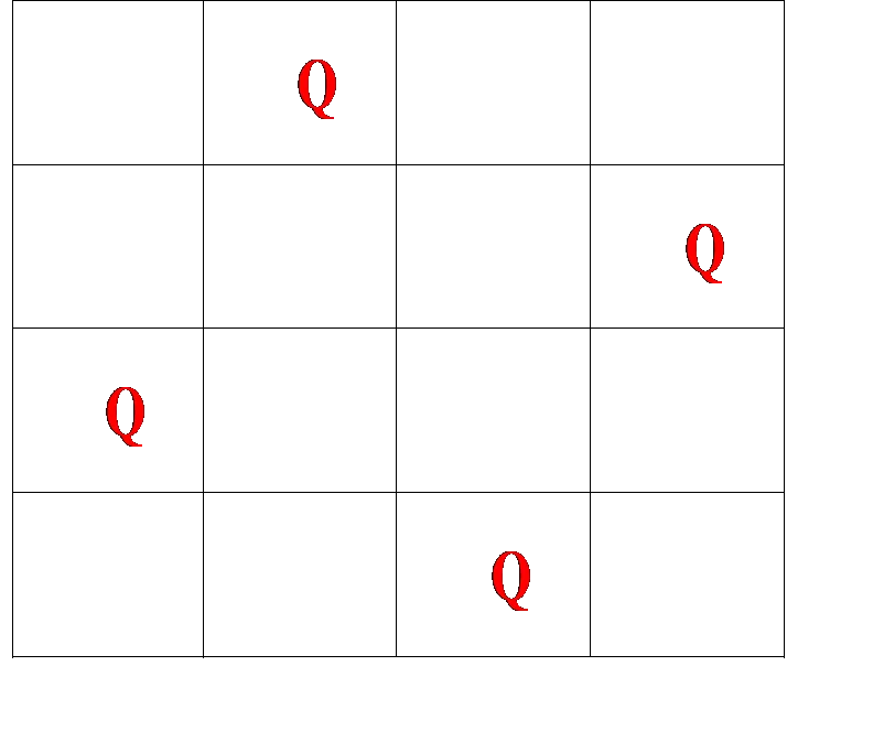 艾博士:所谓四皇后问题,就是在一个4×4的棋盘上,如何摆放4个皇后,使得任何两个皇后都不在一条直线上,包括横线、纵线和斜线。比如图3.25所示的就是四皇后问题的一个解,其中“Q”表示皇后。