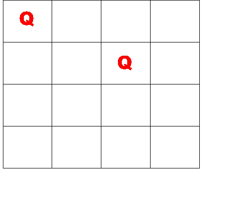 回溯的结果是放弃第二个皇后,将其摆放在二行四列试试,得到状态((1,1),(2,4))。