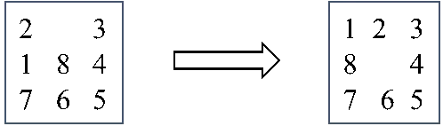 接下来艾博士给小明留了一个练习题,用深度优先搜索算法求解如图3.29所示的八数码问题,并假定深度限制为4。