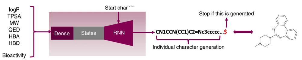 图3:建立RNN模型,生成符合属性的分子结构 [1]