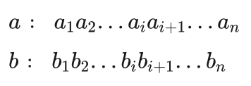 其中ai 、bi 取值0或者1,是组成染色体的基因。交叉操作是这样进行的:随机地产生一个交叉位设为i,则a、b两个染色体从i+1以后的基因进行交换,得到两个新的染色体即两个后代。图4.16给出了两个染色体的交叉示意图。