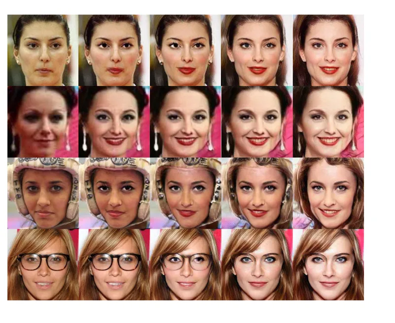 图2:基于美丽度打分的美颜效果,从左到右美丽度依次增加