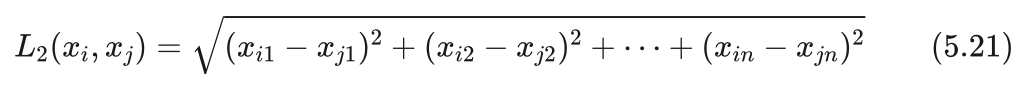 这是最常用的距离计算方法,我们平时说的两点间的距离一般是指欧氏距离。样本 xi 和样本 xj 的欧氏距离为两个样本对应特征值之差的平方和再开方。即: