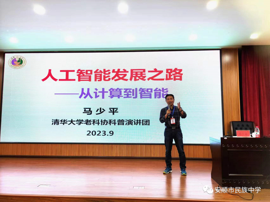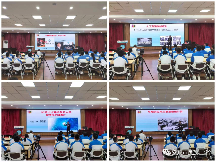 马老师以《人工智能的发展之路》为主题,进行了三场演讲,分别是:9月20日下午安顺市民族中学、9月21日上午安顺镇宁县实验学校、9月21日下午安顺镇宁且民族中学。