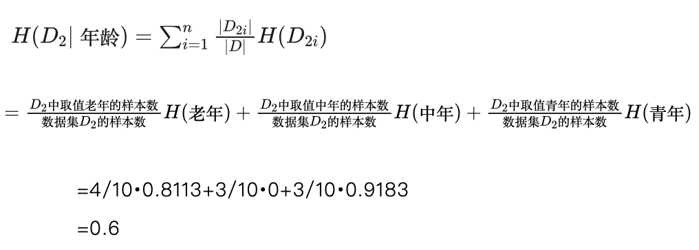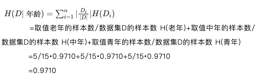 根据式(5.15)有数据集 关于年龄特征的条件熵为: