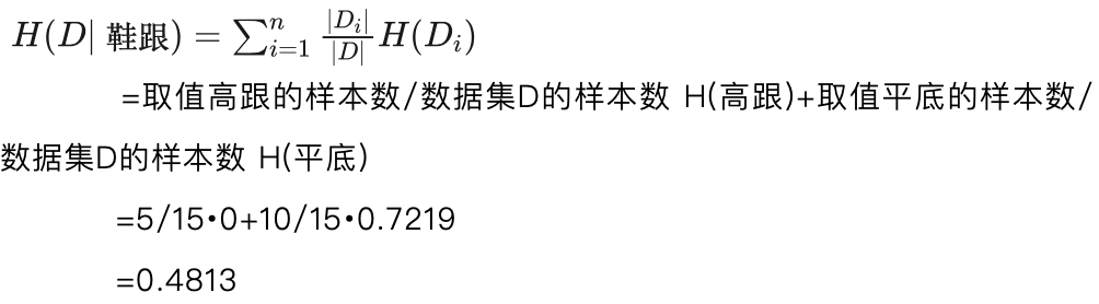所以对于取值高跟时子数据集的熵,我们用H(高跟)表示: