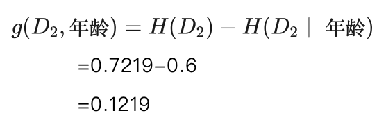 由此我们得到年龄特征在数据集D2上的信息增益为: