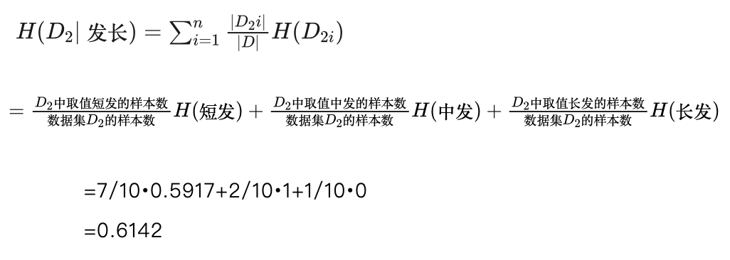 根据式(5.15)有数据集D2关于发长特征的条件熵为: