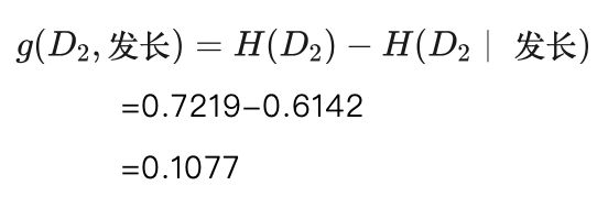 由此我们得到发长特征在数据集D2上的信息增益为: