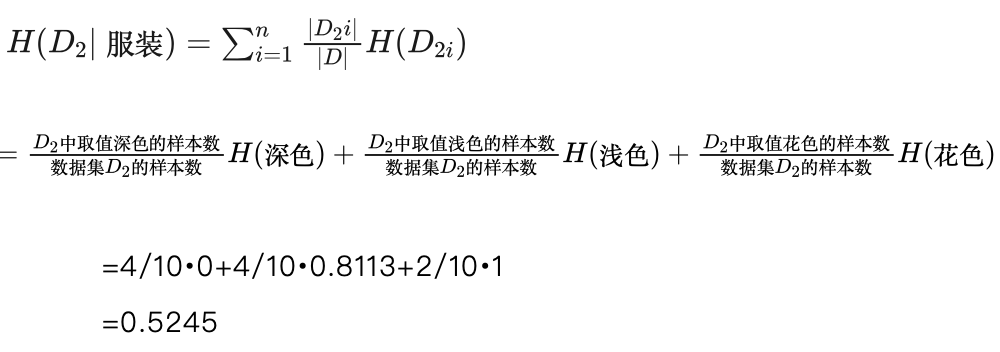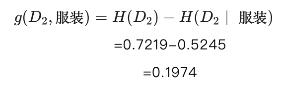 由此我们得到服装特征在数据集 D2 上的信息增益为: