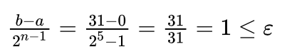 比如如果x是区间[0,31]上的整数,则相当于a=0、b=31、精度 =1,所以当n取5时: