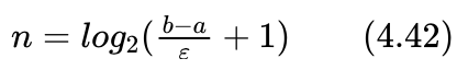 由于编码长度必须为整数,所以当这样计算得到的n含有小数时,就要选取一个大于计算值的最小整数为编码长度。比如还是这个例子,当精度 ε =0.5时,则由式(4.42)求得编码长度: