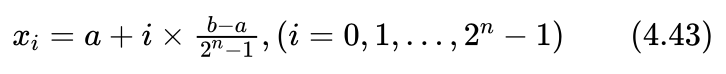 艾博士:对于在区间[a,b]上的实数x,n位二进制数可以表示0到 2^(n-1) 共 2^n 个数,按从小到大的顺序,第i位编码对应x的第i个取值xi ,则: