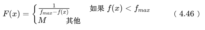 其中f(x)是问题的指标函数,fmax 是当前得到的最大的指标函数值,M是一个充分大的数。M值的大小将影响到算法以怎样的概率选取种群。M不一定是一个常量,可以随着算法的进行而变化,开始时可以相对小一些,以保证种群的多样性,然后可以逐步增大。