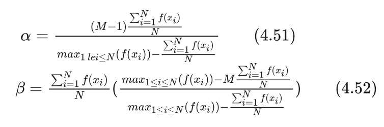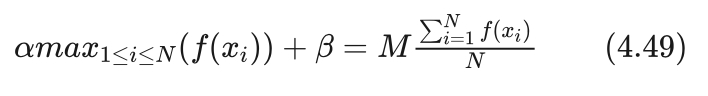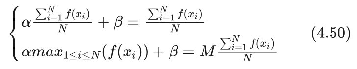 根据第二个原则,群体内适应函数的最大值等于指标函数平均值的M倍。我们先看群体内适应函数的最大值,即: